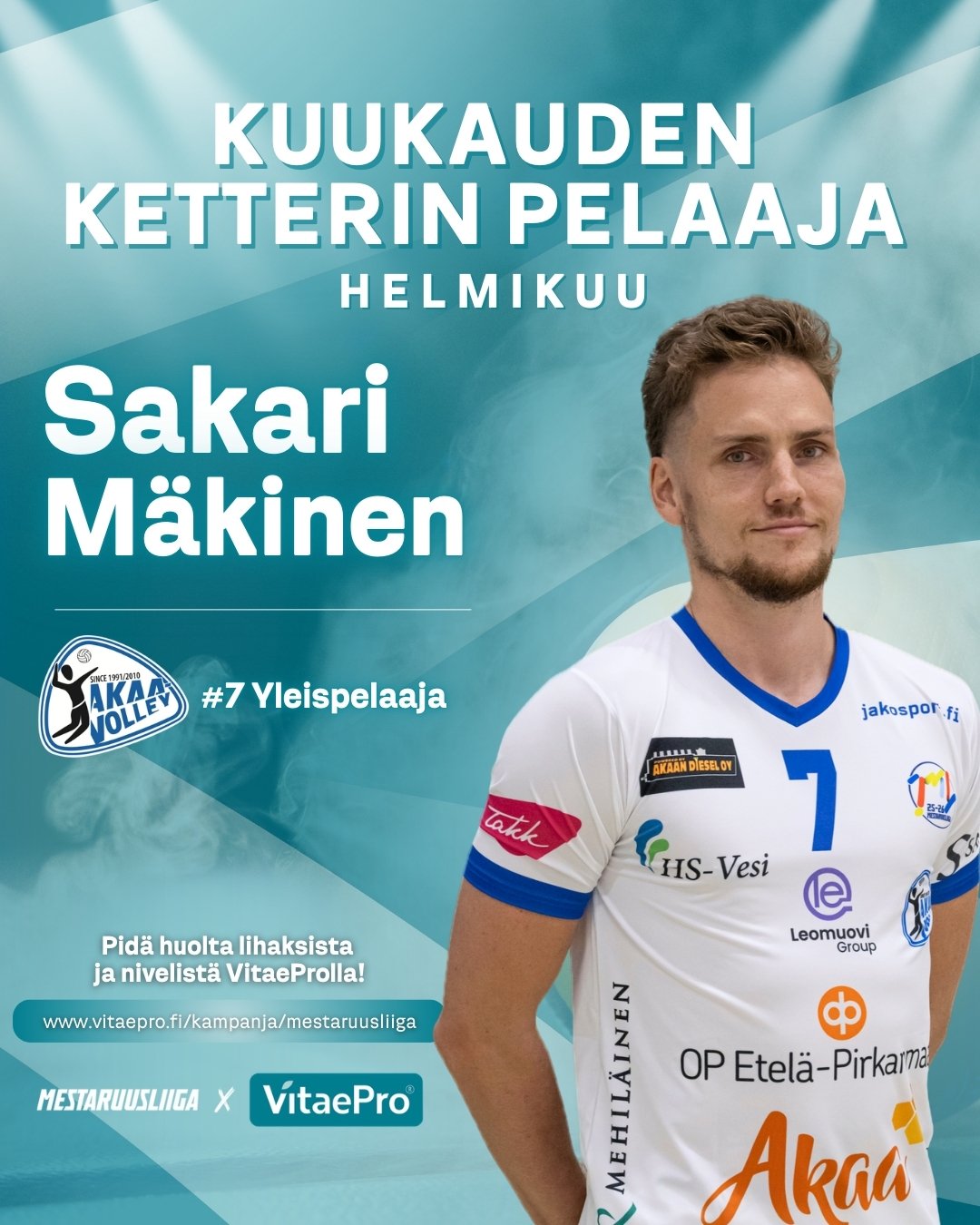 Sakari Mäkisen Akaa-Volley uurasti helmikuussa peräti kymmenen liigapelin verran voittaen niistä kahdeksan. 30-vuotias Mäkinen oli illasta toiseen joukkueen selkäranka moninaisella osaamisellaan.