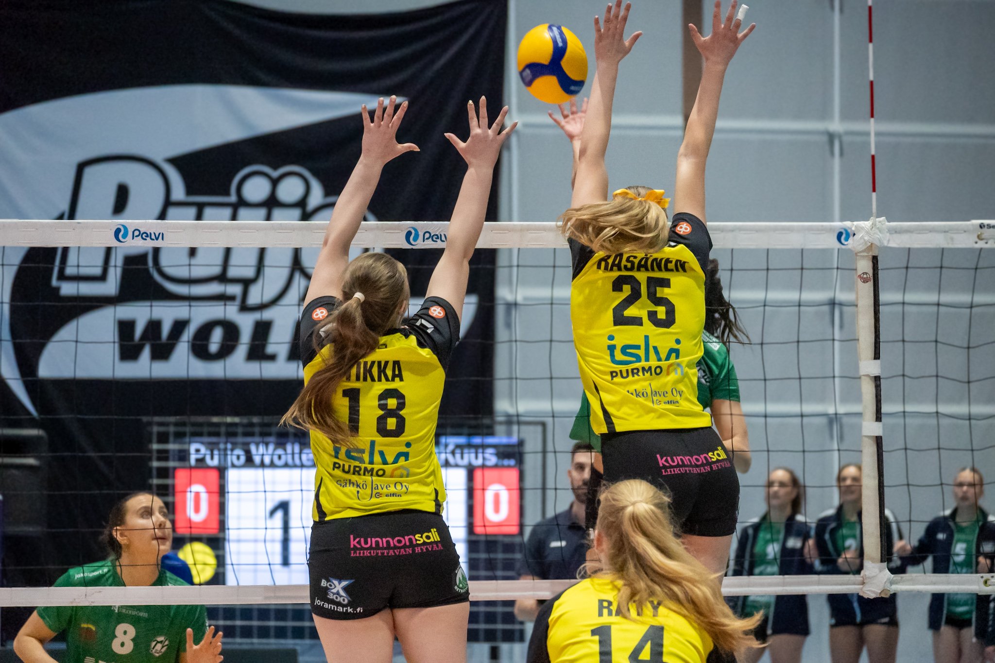 Ottelun alku oli tasaista ja virheherkkää peliä. Selma Räsänen syötti parin Pölkyn hyökkäysvirheen jälkeen ässän ja Puijo johti 9-5. Kotijoukkue onnistui painostamaan omalla syötöllään vastustajaa huomattavasti paremmin. Piste-eroksi kasvoi Liina Rädyn syöttövuorolla jo 17-9, jolloin Puijon pisteissä oli 4 ässää. Puijonkaan vastaanottoprosentti ei kuitenkaan tässä vaiheessa päätä huimannut. Pölkyn Megija Dambrehte ja Jade Cholet kavensivat hyökkäysonnistumisillaan eroksi 17-11, mutta keltamusta kone jatkoi jauhamistaan. Aliyah Carter korvasi erän lopussa Cholet’n takakenttäkierroksella, mutta Puijon etu riitti helposti. Eräpallot 24-15 iski Ada Aronen ja seuraavassa pallossa Pölkylle osui hyökkäysvirhe.