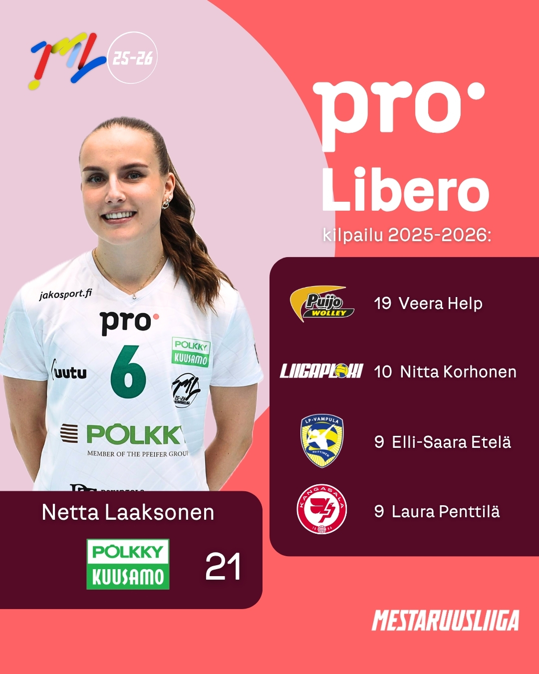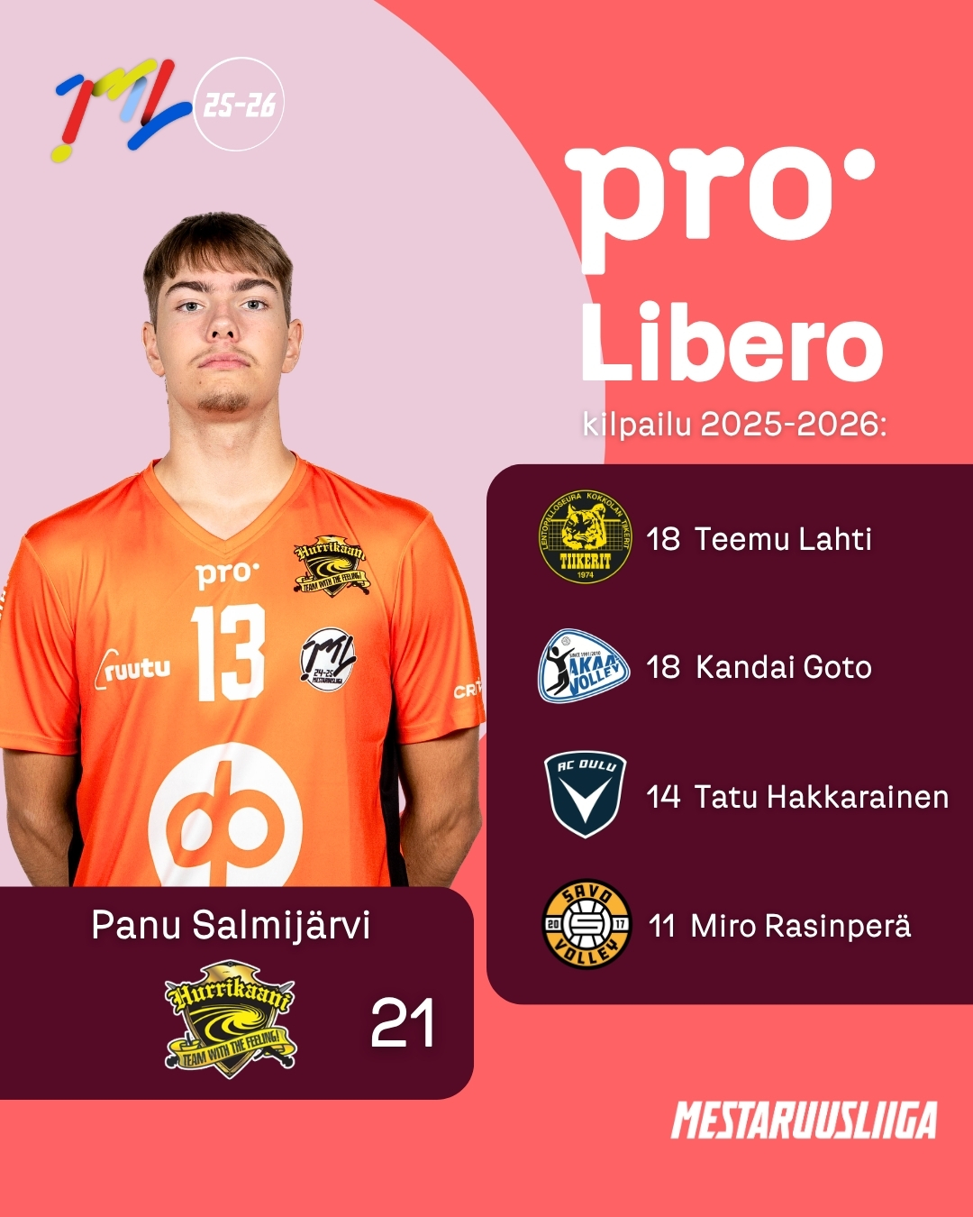 - Tämä PRO Libero -kilsa on hyvä kilpailu liberoille, että meilläkin on jotakin omaa kilpailtavaa siitä tulee mukavasti kilpailutahtoa lisää. Sarja on täynnä hyviä liberoita ja kisa on hyvä, koska se nostaa meidän pelipaikan arvoa koko ajan lisää, Salmijärvi kehuu.